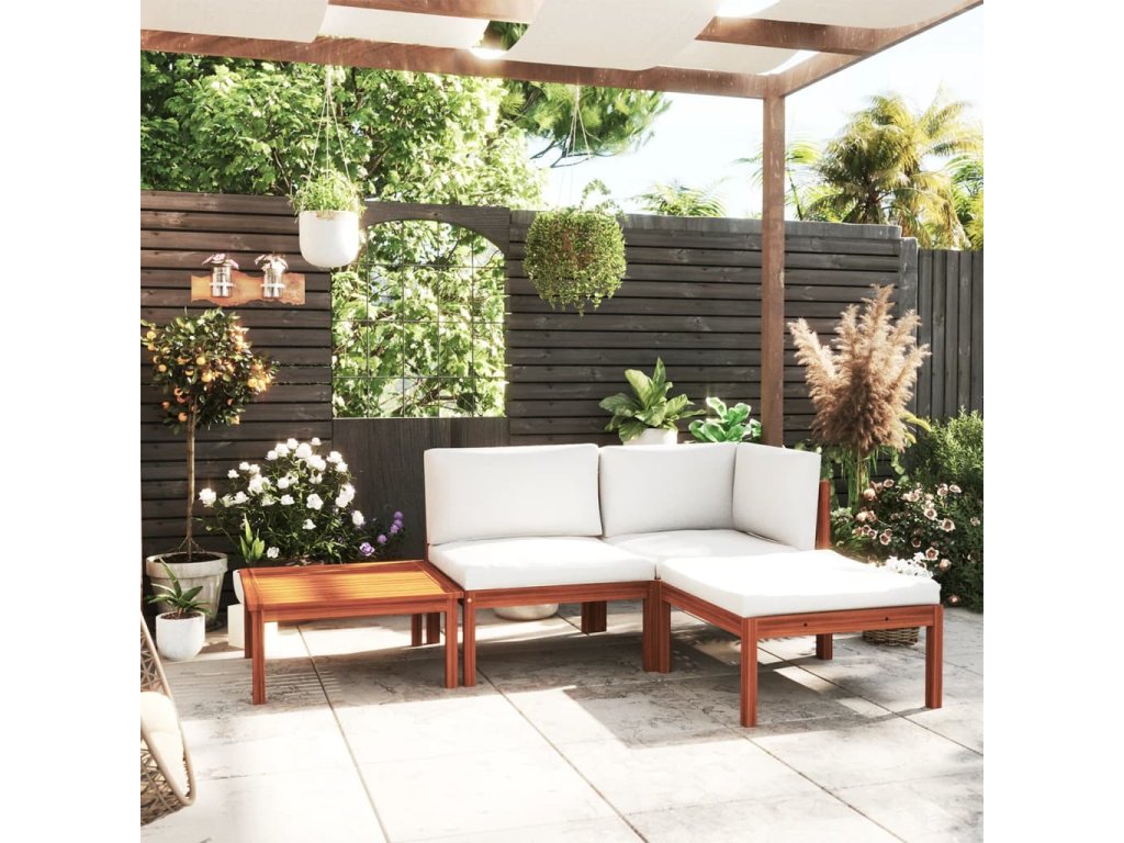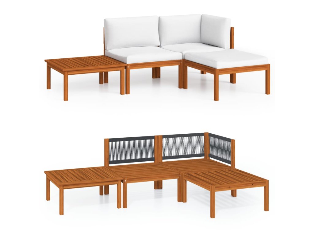 Marketos 4dílná zahradní sedací souprava s polštáři krémové dřevo akácie a provaz