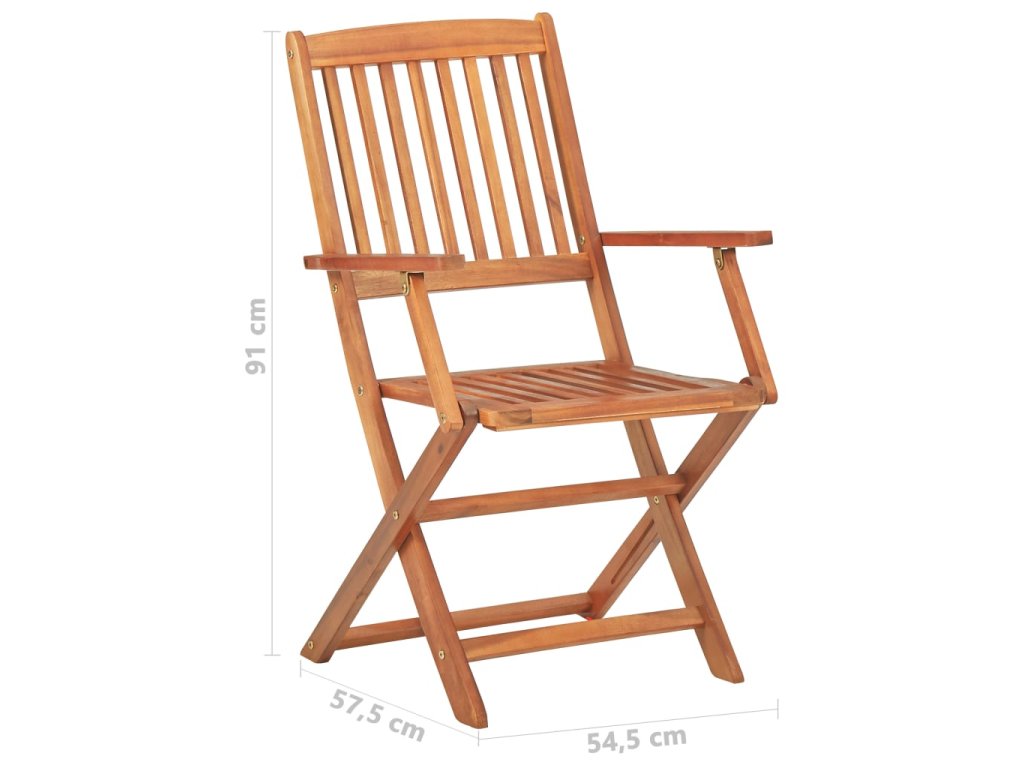Set je vyrobený z masivní akácie, tvrdého tropického dřeva, které je odolné vůči klimatickým vlivům a má velmi dlouhou životnost, proto se hodí k venkovnímu použití. Povrch stolu je ošetřený olejem, takže se snadno čistí, postačí vám k tomu navlhčený hadřík. Stůl i židle jsou skládací pro snadnou úschovu a přenášení.