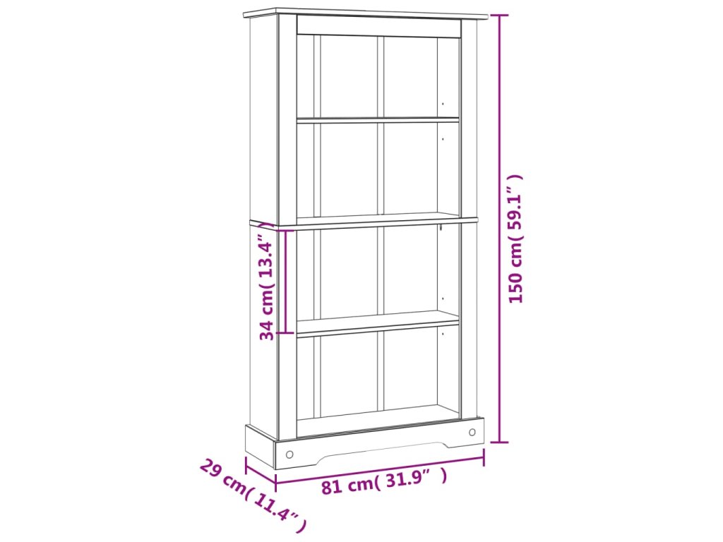 Marketos 4patrová knihovna mexická borovice Corona 80x29x150 cm
