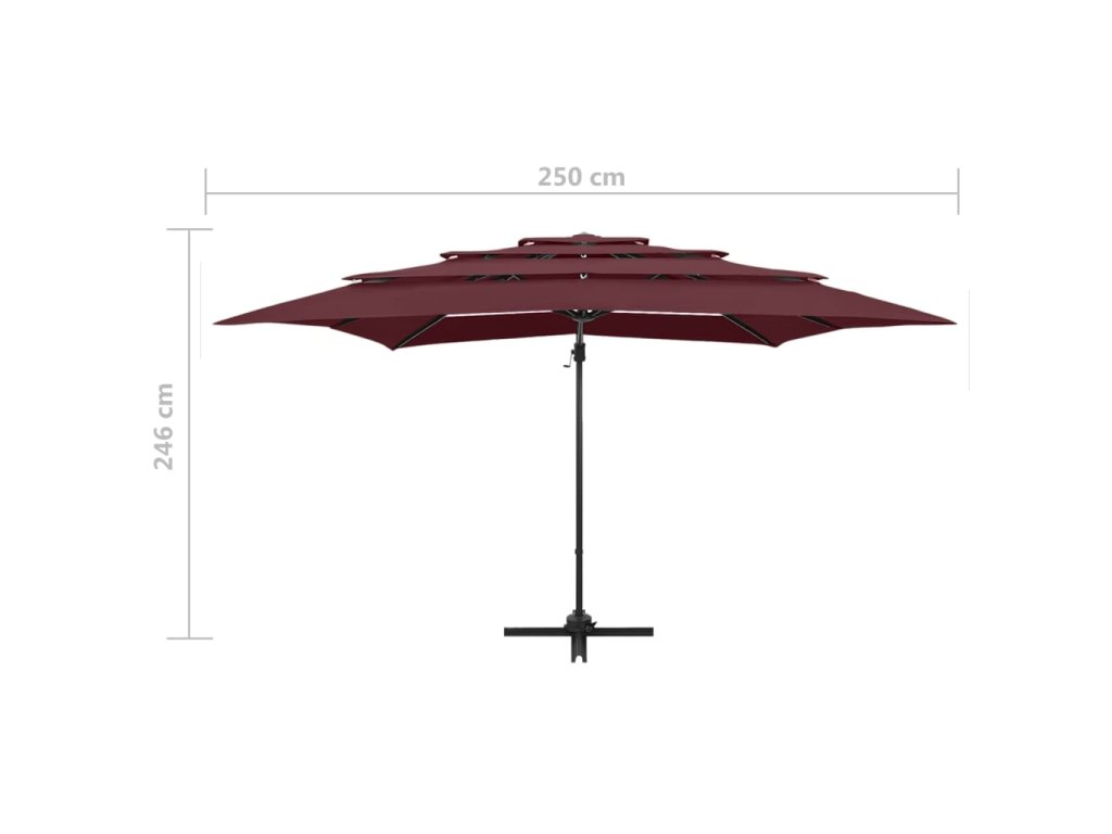 Marketos 4stupňový zahradní slunečník s hliníkovou tyčí bordó 250x250 cm