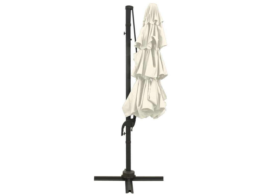 Zahradní slunečník je vyrobený z polyesteru, který nebledne a skvěle odolává UV záření, poskytne vám tedy optimální ochranu proti slunci. Stabilitu zajišťují práškově lakovaná hliníková tyč a žebra. Slunečník je vybavený klikovým mechanismem a funkcí naklápění, je skládací a přenosný. Můžete ho zasadit do svého stávajícího stojanu nebo doprostřed stolů s otvorem na slunečník.