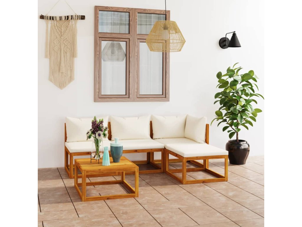 Marketos 5dílná zahradní sedací souprava krémové podušky masivní akácie