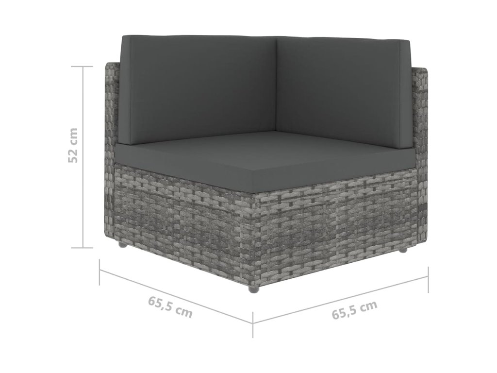 - Rozměry rohové pohovky: 65,5 x 65,5 x 52 cm (Š x H x V)