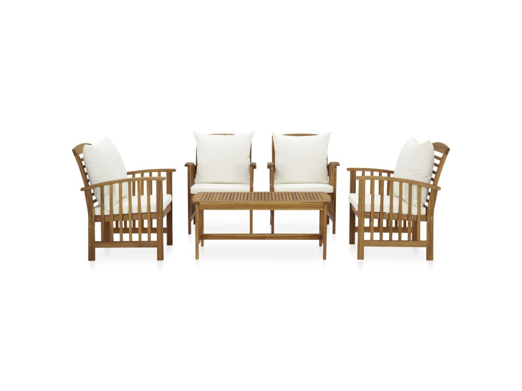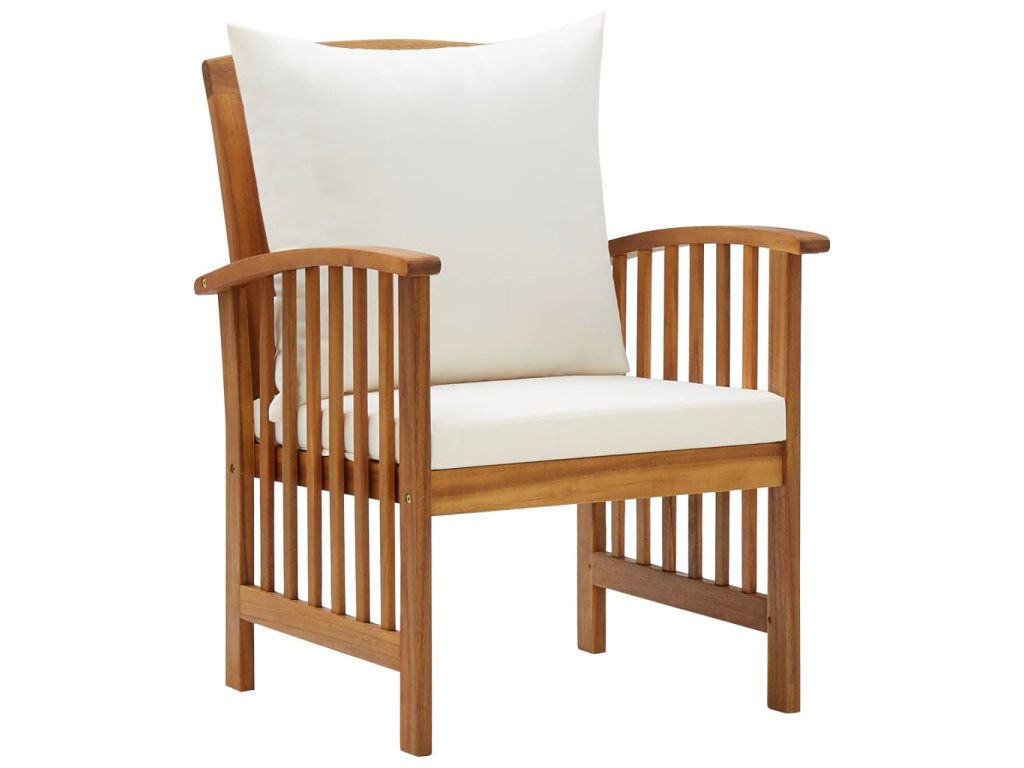 Set zahradního nábytku je zhotovený z masivního akáciového dřeva s olejovou úpravou, je stabilní a má dlouhou životnost. Tlusté podušky na sedák a opěradlo poskytují měkké posezení. Konferenční stolek s masivní dřevěnou stolní deskou s lamelovým designem poslouží jako perfektní odkládací plocha pro vaše občerstvení, mísy s ovocem, dekorativní předměty a další nezbytnosti. Na židlích s lehce zaobleným opěradlem a loketními opěrkami se velmi pohodlně sedí.