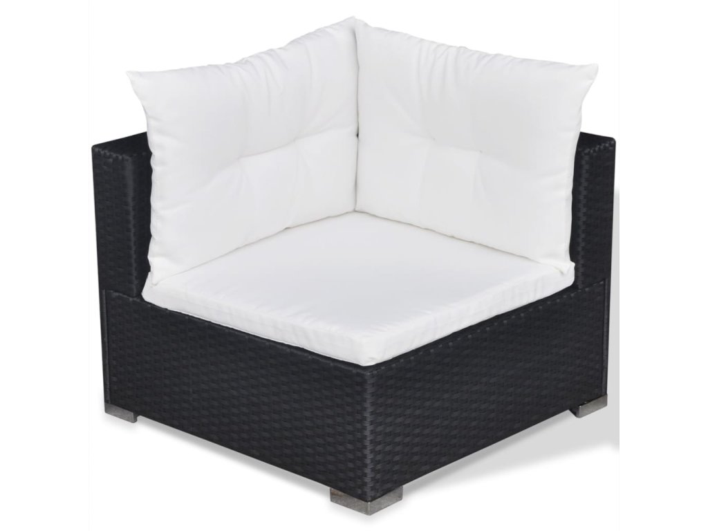 Balení obsahuje 2 rohové pohovky, 1 středovou pohovku, 1 podnožku, 1 čajový stolek, 4 polstry na sedáky a 5 polstrů na opěradla.