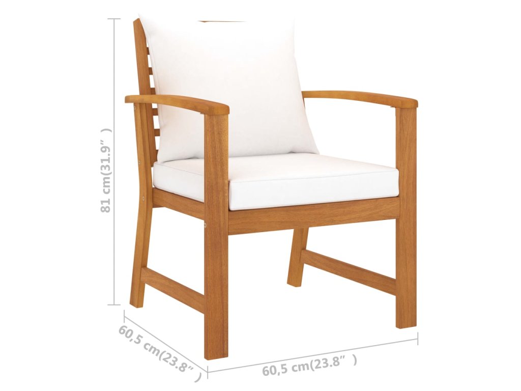 - Materiál: masivní akáciové dřevo s olejovou povrchovou úpravou, textil (100% polyester)