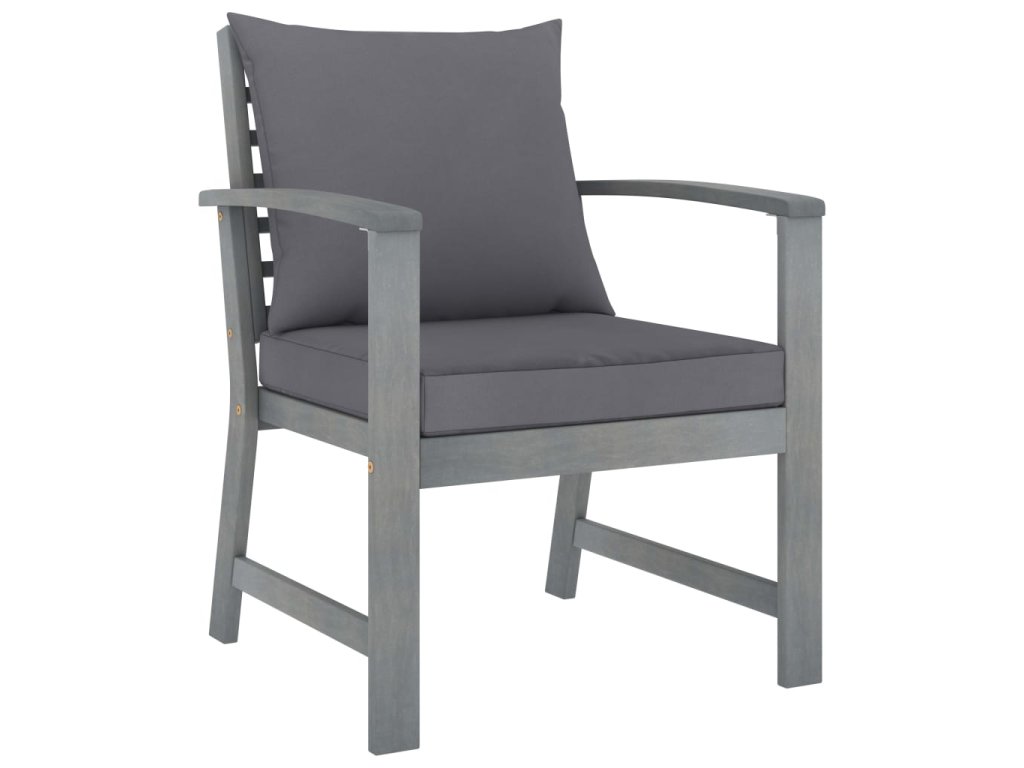 - Materiál: masivní akáciové dřevo s šedou povrchovou úpravou, textil (100% polyester)