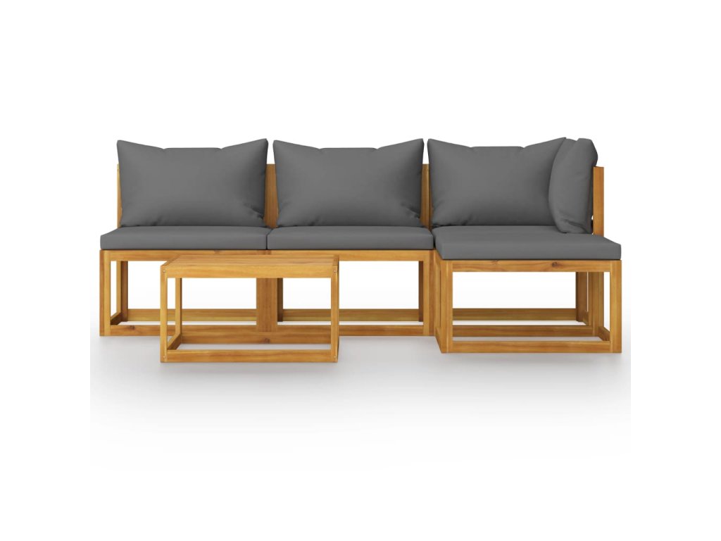 Rám z masivního akáciového dřeva je pevný, odolný a má dlouhou životnost. Dřevo je napuštěné olejem, sedací souprava je proto vhodná i pro venkovní použití. Odnímatelné podušky na sedáky a opěradla jsou silně polstrované, takže se vám na nich bude nesmírně dobře sedět. Součástí balení je také konferenční stolek v unikátním laťkovém provedení. Nevšední modulární design vám umožní všechny díly přestavovat a upravovat dle momentálních potřeb.