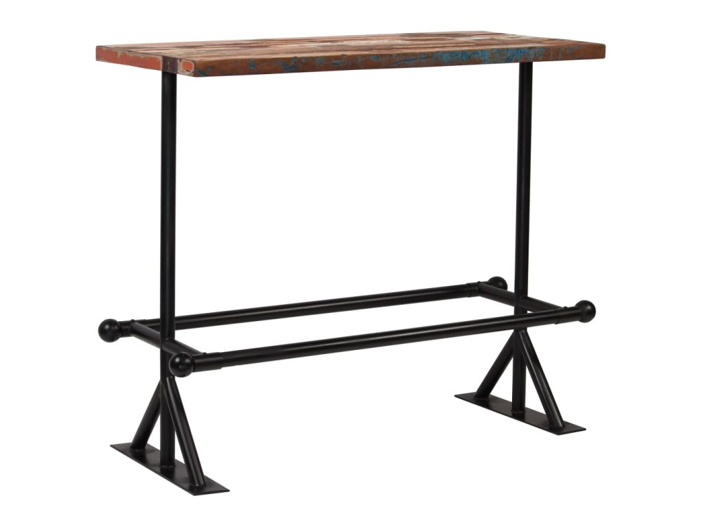 Barový stůl a židle jsou vyrobené z masivního recyklovaného dřeva, které pochází z trámů, podlah a podpěrných nosníků ze starých stržených budov. Může tedy obsahovat různé typy dřeva, jako je borovice, teak, buk, dub, cedr, mangovník, akácie atd. Znamená to, že recyklované dřevo má charakteristiky všech těchto různých druhů dřevin. Navíc je již zestárlé, zvětralé a vyschlé, takže se nesmršťuje ani neohýbá.