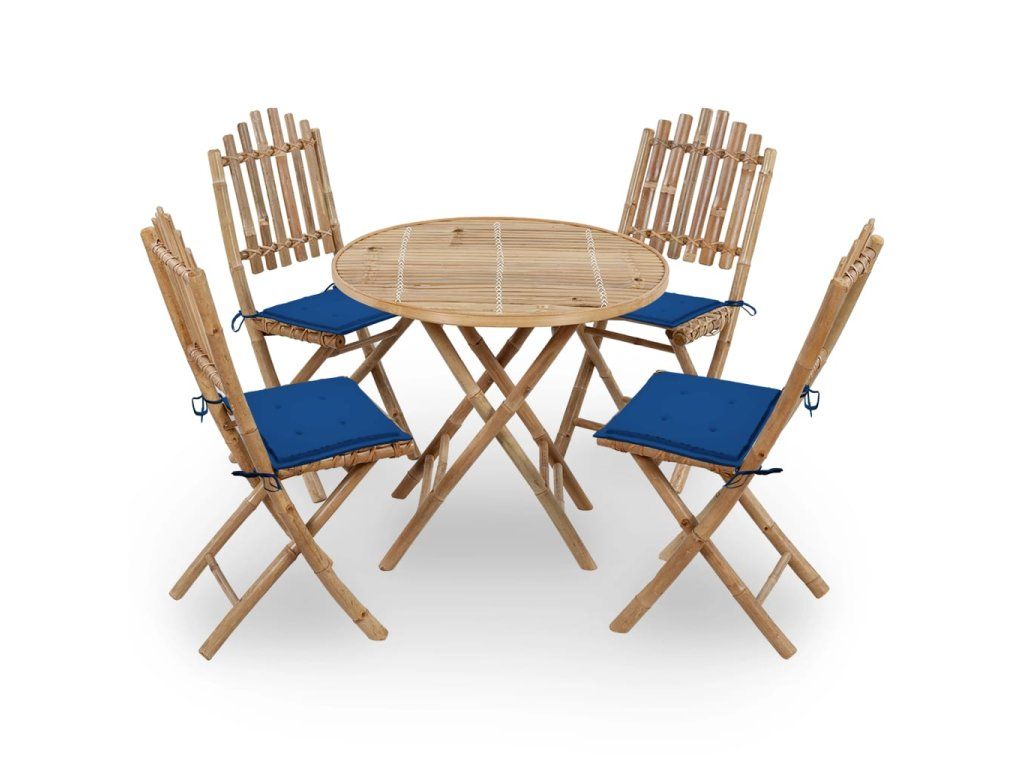 Marketos 5dílný skládací zahradní jídelní set s poduškami bambus