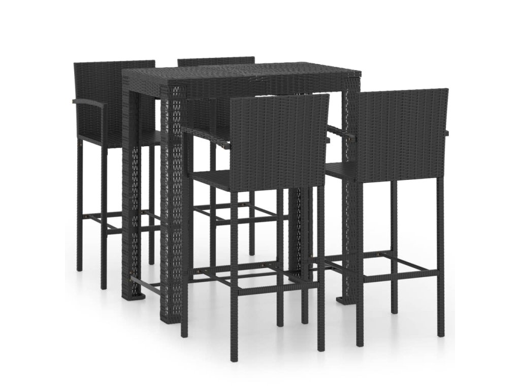 Marketos 5dílný zahradní barový set s područkami polyratan černý