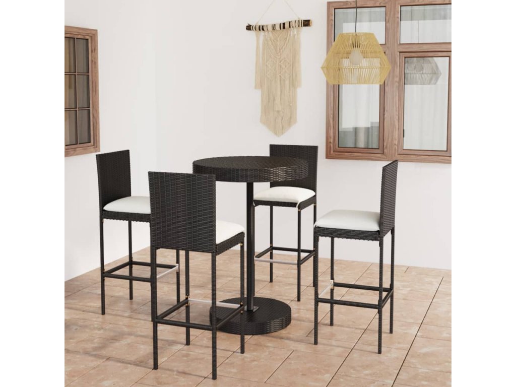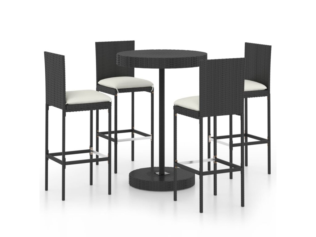 Marketos 5dílný zahradní barový set s poduškami polyratan černý
