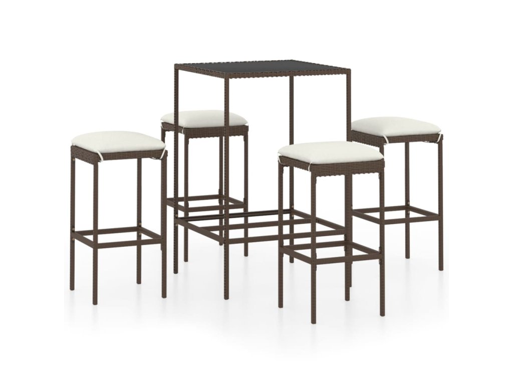 Marketos 5dílný zahradní barový set s poduškami polyratan hnědý