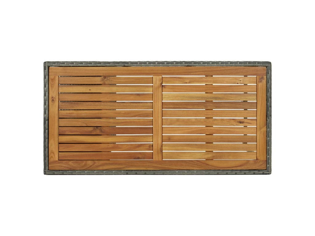 - Materiál: polyratan, práškově lakovaná ocel, akáciové dřevo s olejovaným povrchem, textil (100% polyester)