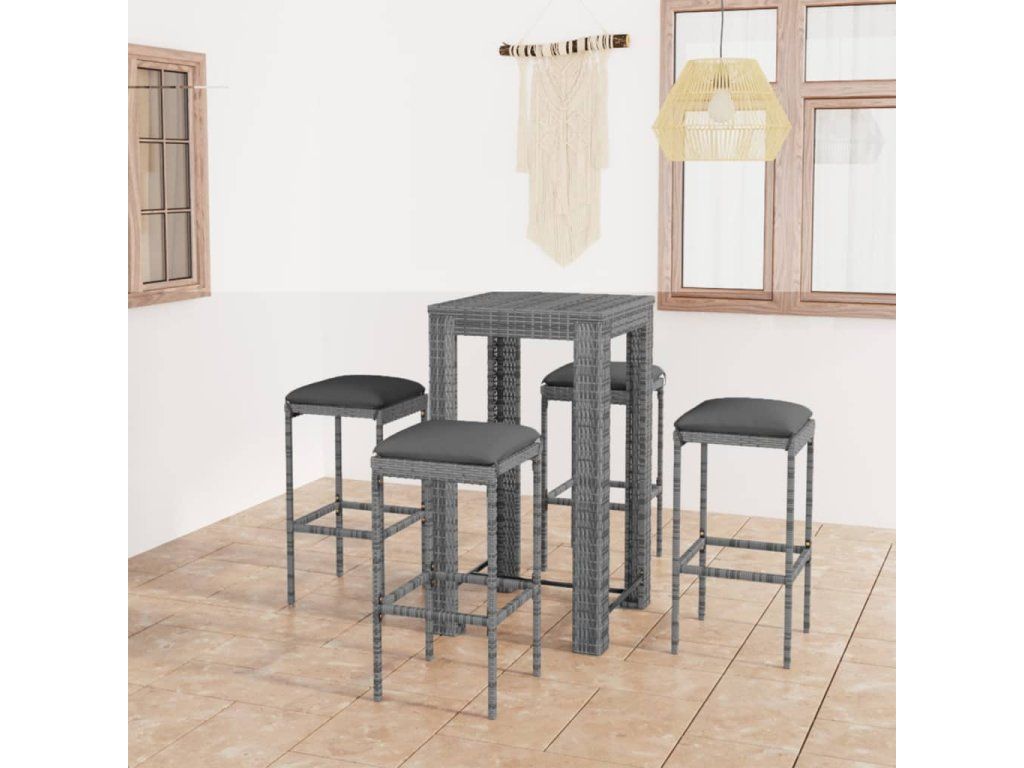 Marketos 5dílný zahradní barový set s poduškami polyratan šedý