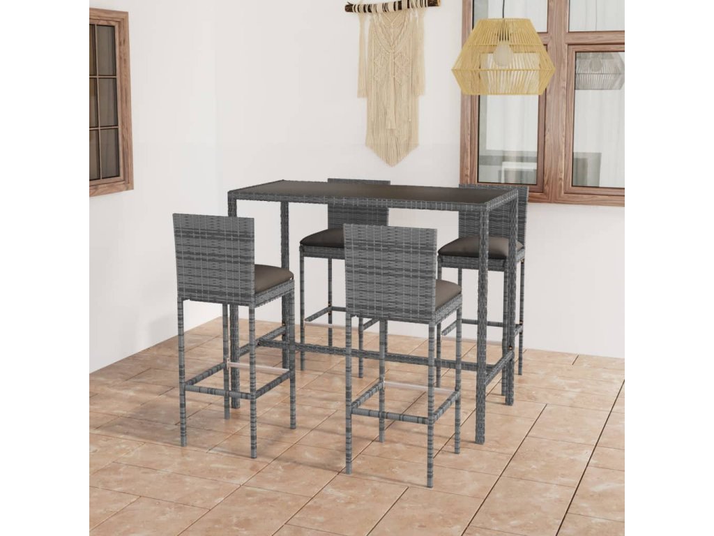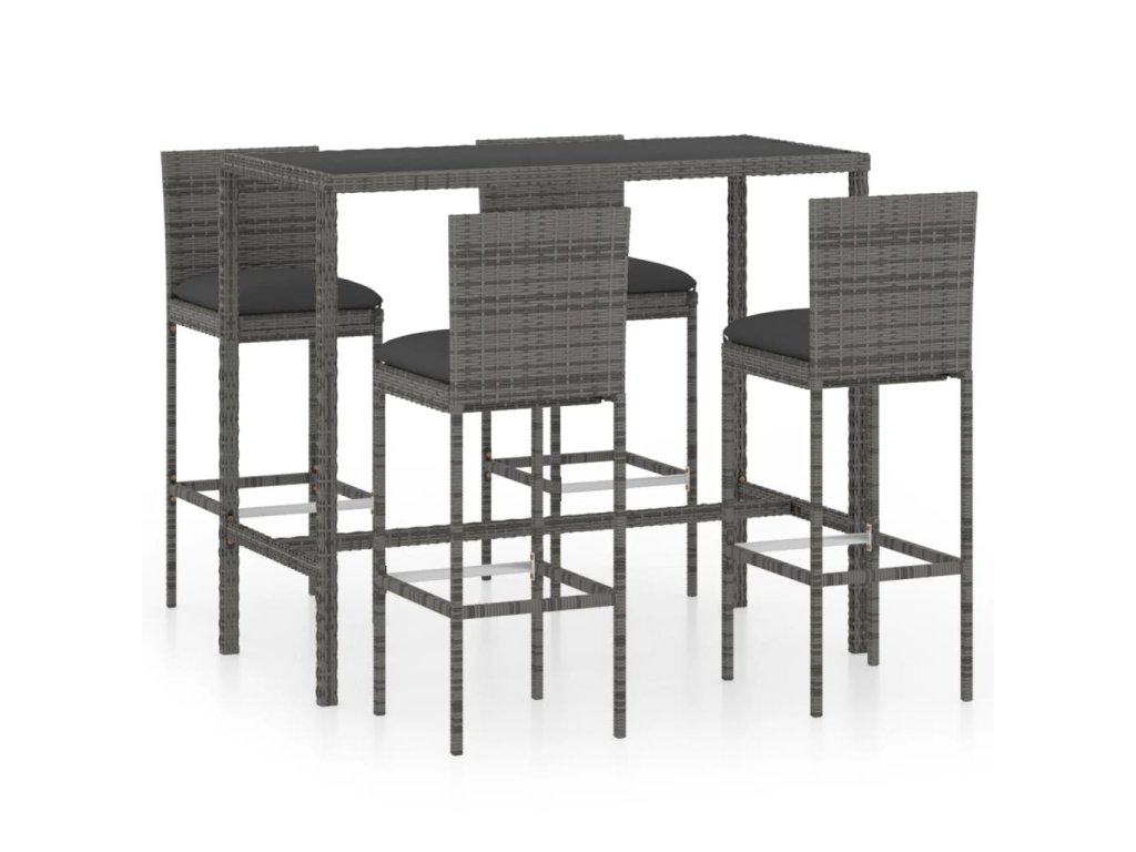 Marketos 5dílný zahradní barový set s poduškami polyratan šedý