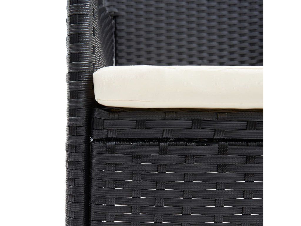 Jídelní set je vyrobený z PE ratanu s pevným rámem z práškově lakované oceli, takže je klimaticky odolný a robustní. Stolní deska ze zesíleného tvrzeného skla má hladký povrch, který se snadno čistí. Každé křesílko je opatřené odnímatelnou silně polstrovanou poduškou, abyste si ve volném čase užili zaslouženého pohodlí. Všechny potahy na podušky mají zip a jsou snímatelné. Lehká konstrukce umožňuje nenáročné přesouvání, přeskupení a přenášení všech dílů sestavy.