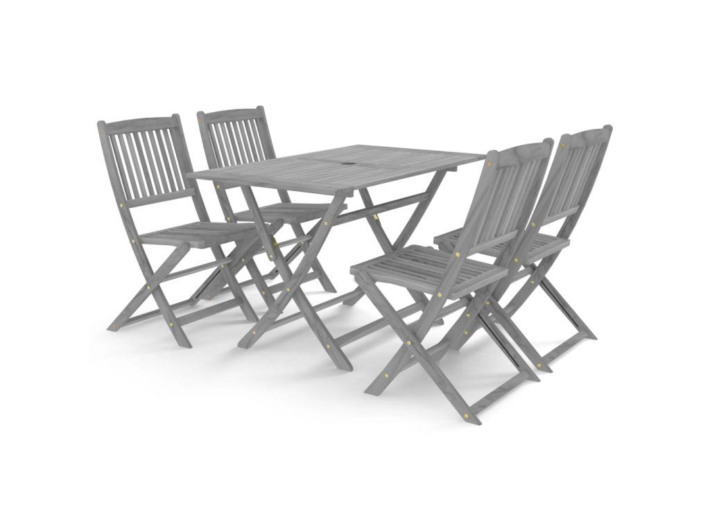 Stůl i židle jsou vyrobené z masivního akáciového dřeva zesvětleného do šedé barvy. Skvěle tudíž odolávají vlivům počasí, mají dlouhou životnost a dají se snadno očistit navlhčeným hadříkem. Celý set má robustní dřevěnou konstrukci, takže je velice stabilní. Navíc vám poskytne mimořádné pohodlí a báječné místo, kde trávit čas s rodinou a přáteli. Jak stůl, tak židle lze rovněž složit pro jednodušší uskladnění a přepravu, když je právě nepotřebujete.