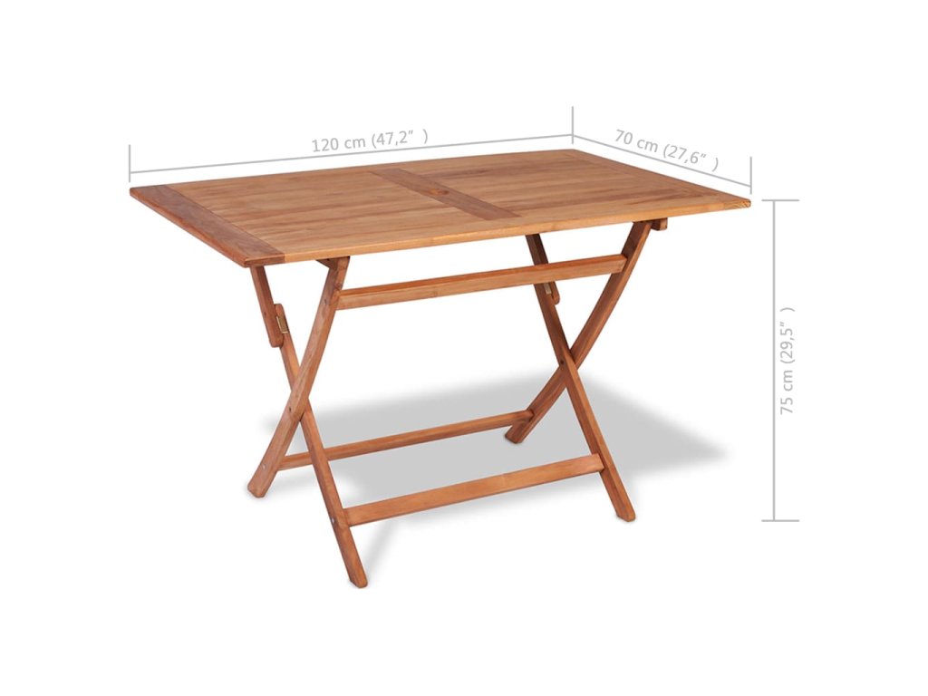 Tato jídelní sestava z masivního teaku je jako dělaná na kempování nebo piknik. Přijde vám také vhod, pokud potřebujete dodatečná místa k sezení.
