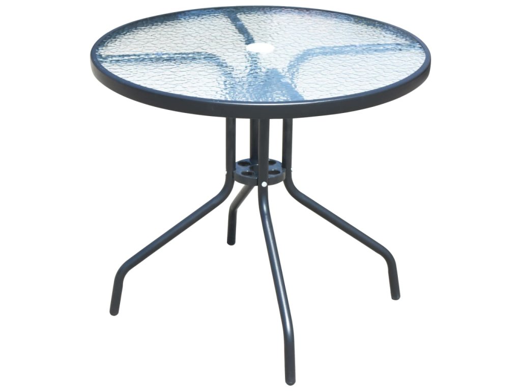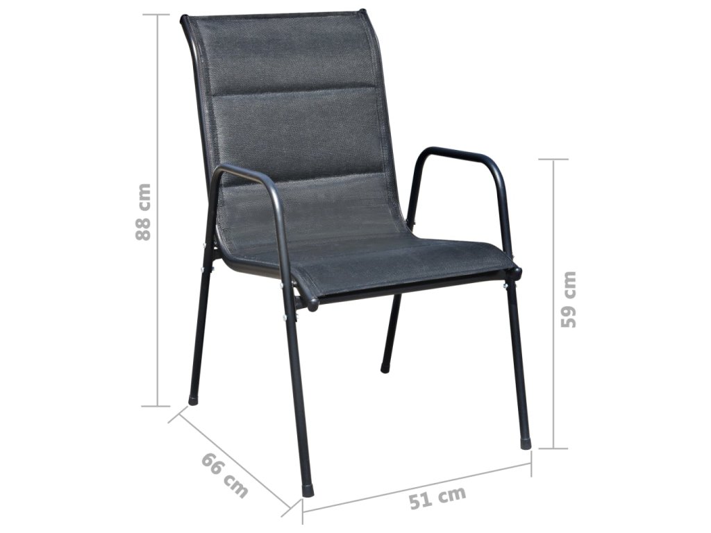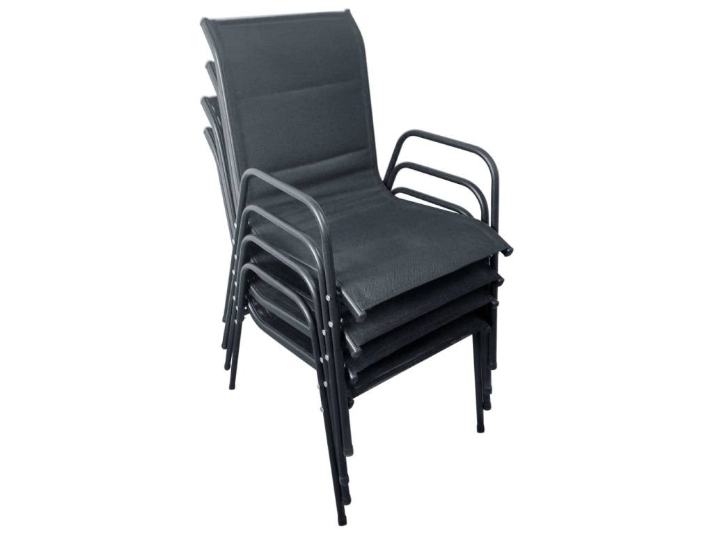 Komfortní židle jsou vyrobeny z kvalitní oceli s práškovým nástřikem. Díky silné textilní látce s vodotěsným polstrováním jsou naše židle velmi komfortní, odolné vůči povětrnostním vlivům a snadno čistitelné. Židle jsou stohovatelné, aby ušetřily místo. Stůl má desku o tloušťce 5 mm, vyrobenou z tvrzeného zvlněného skla, na kterou můžete umístit nápoje, občerstvení nebo dekorativní předměty. Má také robustní ocelový rám s práškovým nástřikem, který je odolný a snadno se udržuje. S otvorem na slunečník uprostřed stolu, jak na vrchu stolu, tak i pod ním, můžete tedy snadno umístit velký baldachýn pro vytvoření stínu během horkého léta. Montáž je snadná.