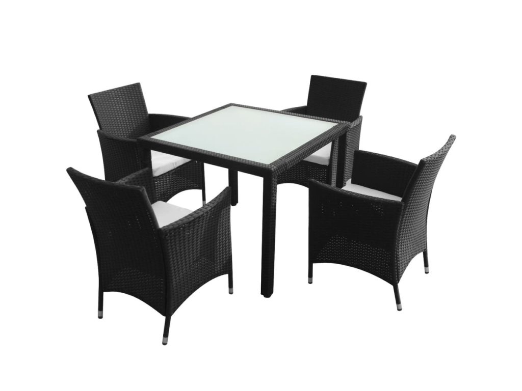 Marketos 5dílný zahradní jídelní set s poduškami polyratan černý
