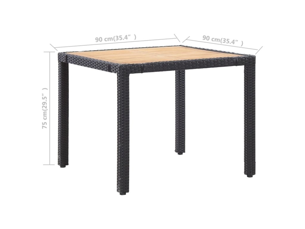 - Rozměry stolu: 90 x 90 x 75 cm (D x Š x V)