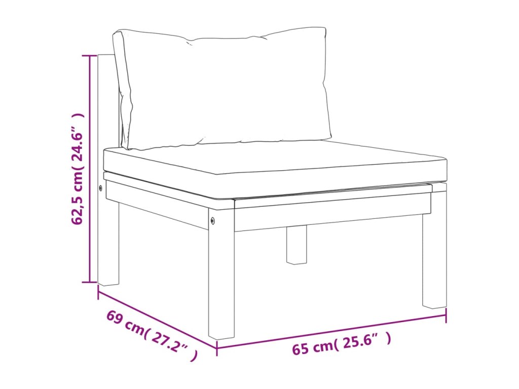 - Rozměry středové pohovky: 65 x 69 x 62,5 cm (Š x H x V)