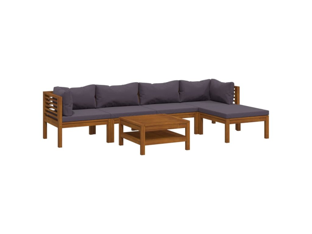 Rám z masivního akáciového dřeva je pevný, odolný a má dlouhou životnost. Dřevo je napuštěné olejem, sedací souprava je proto vhodná i pro venkovní použití. Odnímatelné podušky jsou silně polstrované, takže se vám na nich bude nesmírně dobře sedět. Součástí balení je také konferenční stolek v unikátním laťkovém provedení. Nevšední modulární design vám umožní všechny díly přestavovat a upravovat dle momentálních potřeb.