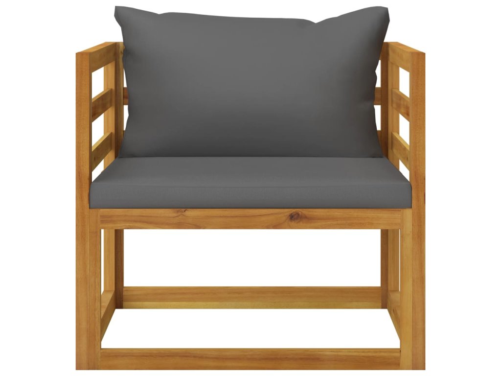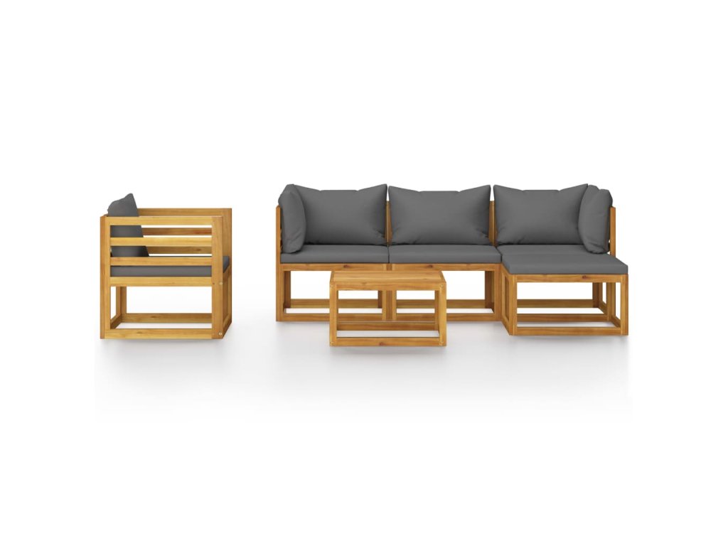 Rám z masivního akáciového dřeva je pevný, odolný a má dlouhou životnost. Dřevo je napuštěné olejem, sedací souprava je proto vhodná i pro venkovní použití. Odnímatelné podušky na sedáky a opěradla jsou silně polstrované, takže se vám na nich bude nesmírně dobře sedět. Součástí balení je také konferenční stolek v unikátním laťkovém provedení. Nevšední modulární design vám umožní všechny díly přestavovat a upravovat dle momentálních potřeb.
