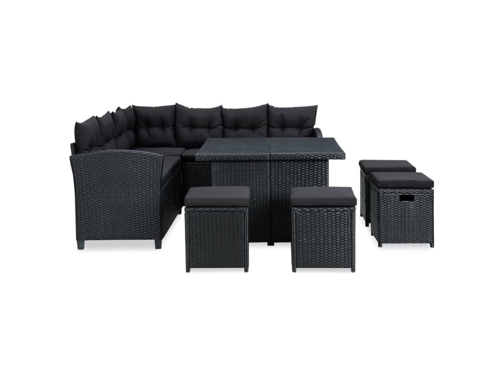 Tato pohodlná venkovní sedací souprava má ocelový rám s práškovým nástřikem, který je potažený PE ratanem, je robustní a snadno se čistí, takže je ideální pro každodenní venkovní použití. Zahradní nábytek má lehkou konstrukci, takže ho můžete snadno přesouvat. Na silně polstrovaných poduškách můžete lenošit v extra pohodlí. Rohová pohovka a stoličky poskytují dostatek místa k sezení pro rodinná setkání. Konferenční stolek je navíc ideální pro odkládání nápojů, jídla a dekorací.