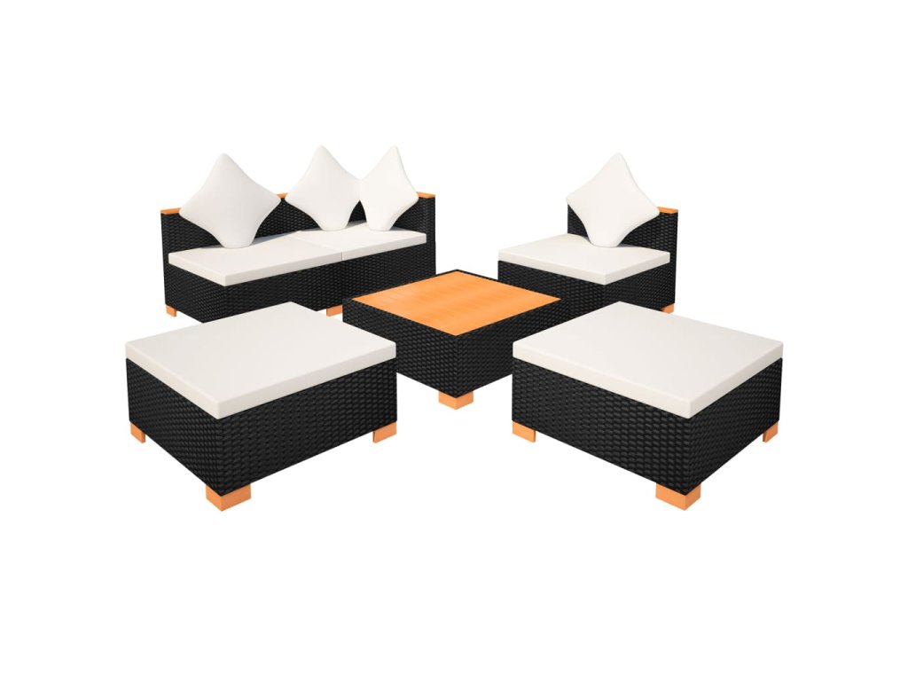 Marketos 6dílná zahradní sedací souprava s poduškami polyratan černá