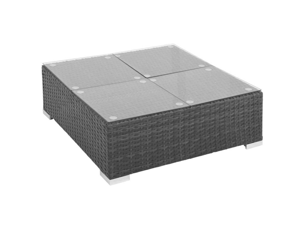 - Materiál: PE (polyetylenový) ratan + skleněná stolní deska + ocelový rám s práškovým nástřikem