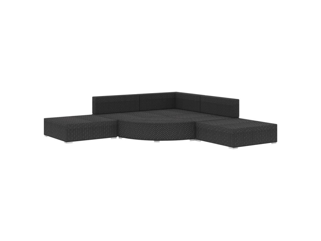 Balení obsahuje 1 rohovou pohovku, 2 středové pohovky, 2 podnožky, 1 otoman ve tvaru vějíře, 6 podušek na sedáky a 4 podušky na opěradla.