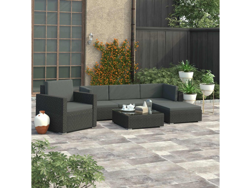 Marketos 6dílná zahradní sedací souprava s poduškami polyratan černá