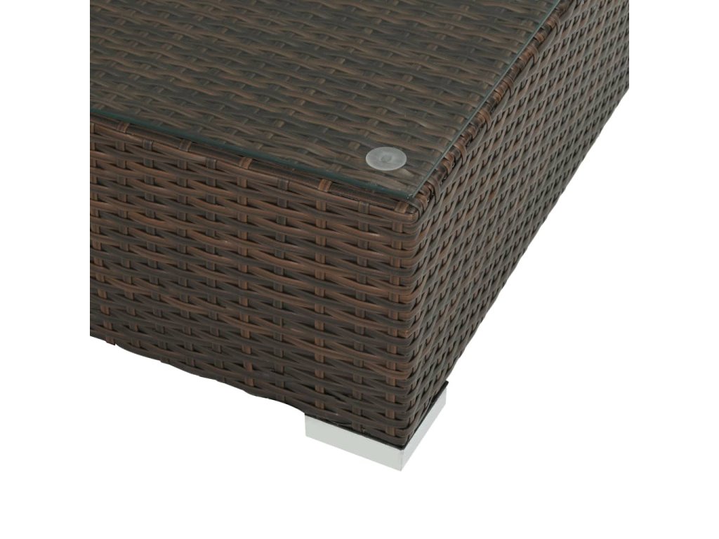 - Materiál: PE (polyetylenový) ratan + skleněná stolní deska + ocelový rám s práškovým nástřikem