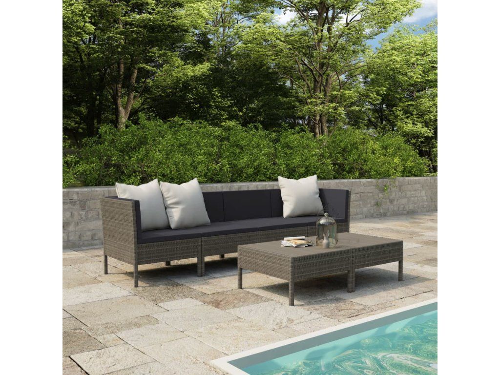 Souprava se skládá z 6 dílů, které můžete vzájemně přemisťovat a kombinovat podle vašich představ. Nábytek je vyrobený z odolného polyratanu, ručně vyplétaného na práškově lakovaný ocelový rám. Souprava je pevná, robustní a klimaticky odolná. PE ratan vzdoruje všem rozmarům počasí, snadno se čistí, je odolný vůči opotřebení a vhodný pro každodenní použití. Hustě polstrované podušky a extra hluboké moderní sedáky vás budou lákat k příjemné relaxaci. Konferenční stolek je ideální k odkládání jídla a nápojů na dosah ruky. Odlehčená a modulární konstrukce usnadňuje přemísťování a přestavování této soupravy zahradního nábytku.