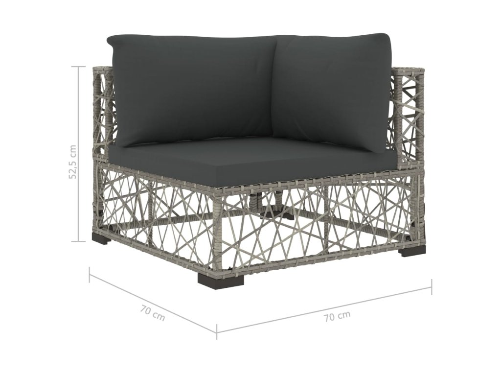 Sedací sestava je zhotovená z PE ratanu, který skvěle vzdoruje vodě a povětrnostním vlivům, takže se snadno čistí, hodně toho vydrží a je vhodná pro každodenní použití. Sedák má robustní ocelový rám s práškovým nástřikem a plastové nožičky. Je také lehká, dá se tedy snadno přesouvat z místa na místo. Silné odnímatelné podušky na sedák a opěradlo s výplní z vertikálního bavlněného vlákna vám zaručují mimořádné pohodlí při sezení. Snadno čistitelné polyesterové potahy se skrytými zipy lze sejmout a vyprat. Modulární ratanová sedací souprava je mimořádně flexibilní a lze ji snadno přemístit tak, aby vyhovovala jakémukoli prostředí!