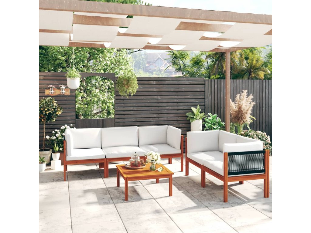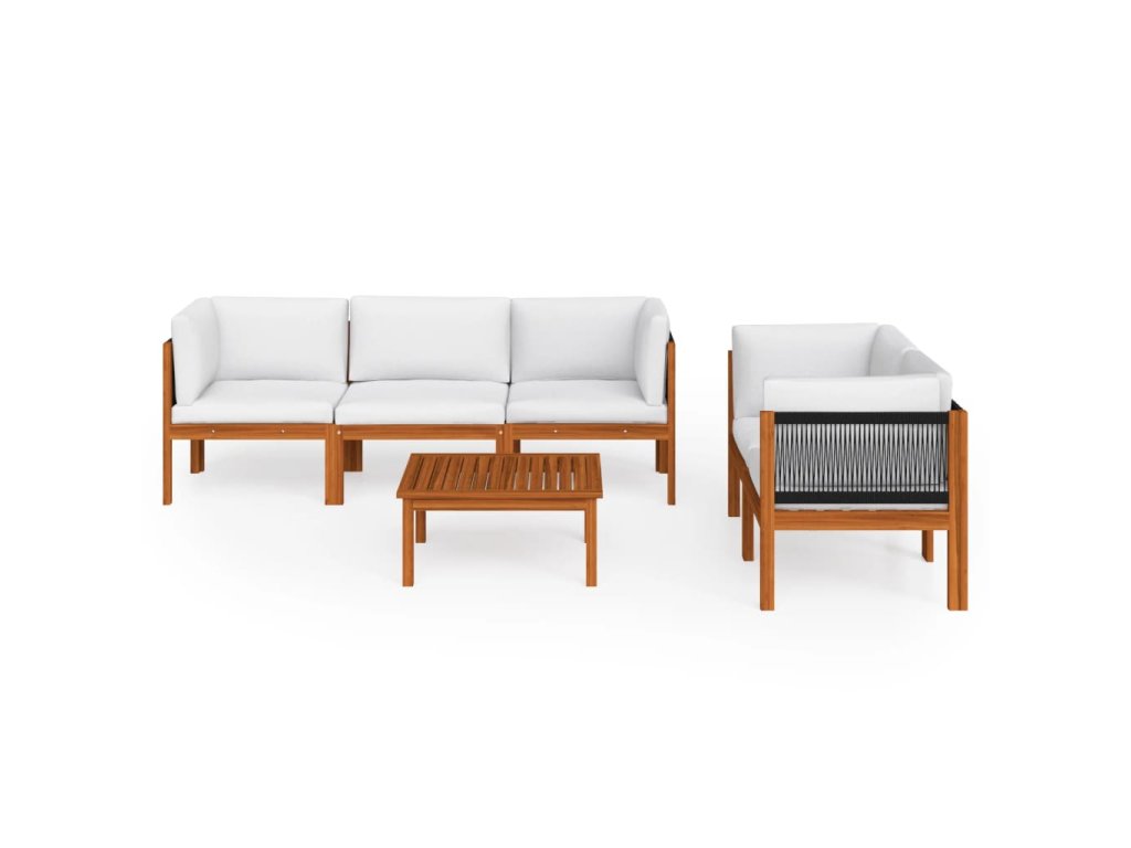 Marketos 6dílná zahradní sedací souprava s polštáři krémové dřevo akácie a provaz