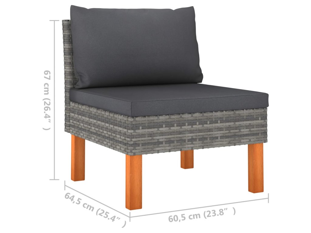 - Rozměry střední pohovky: 60,5 x 64,5 x 67 cm (Š x H x V)