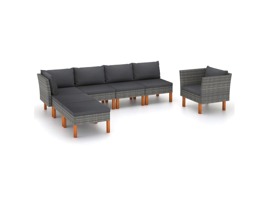 Marketos 7dílná zahradní sedací souprava polyratan a eukalyptus šedá