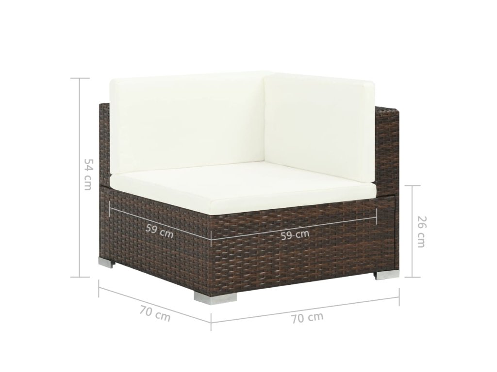 Zahradní sedací souprava je zhotovená z klimaticky odolného PE ratanu, takže se snadno čistí, je pevná a vhodná pro každodenní venkovní použití. Ocelové rámy s práškovým nástřikem zajišťují odolnost a stabilitu celé soupravy. Nábytek je také velice lehký a modulární díly soupravy můžete jednoduše kombinovat v různých konfiguracích. Součástí této sady jsou také mimořádně pohodlné, silně polstrované podušky na sedáky a polštáře za záda, které vám umožní užívat si maximálního pohodlí. Polyesterové potahy jsou nenáročné na údržbu a je snadné je sejmout a vyprat. Soupravu je nutno sestavit.