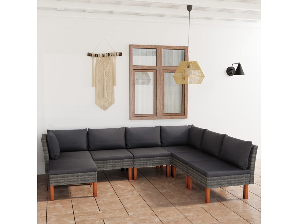 - Materiál: PE ratan, práškově lakovaná ocel, masivní eukalyptové dřevo s olejovaným povrchem