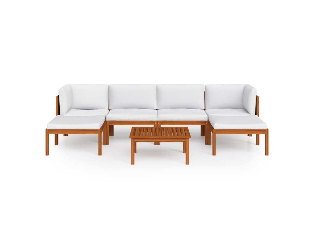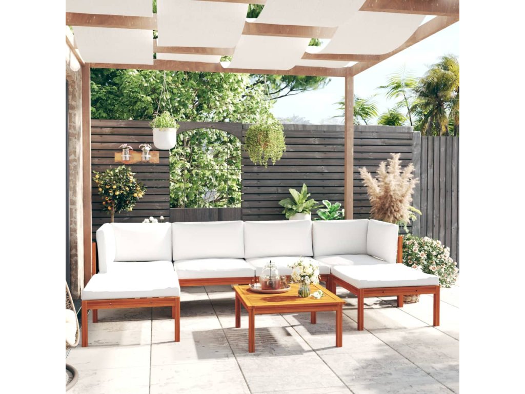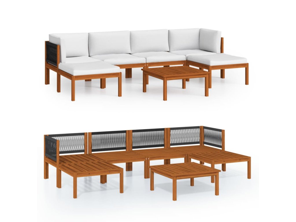 Marketos 7dílná zahradní sedací souprava s polštáři krémové dřevo akácie a provaz