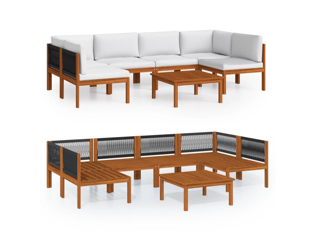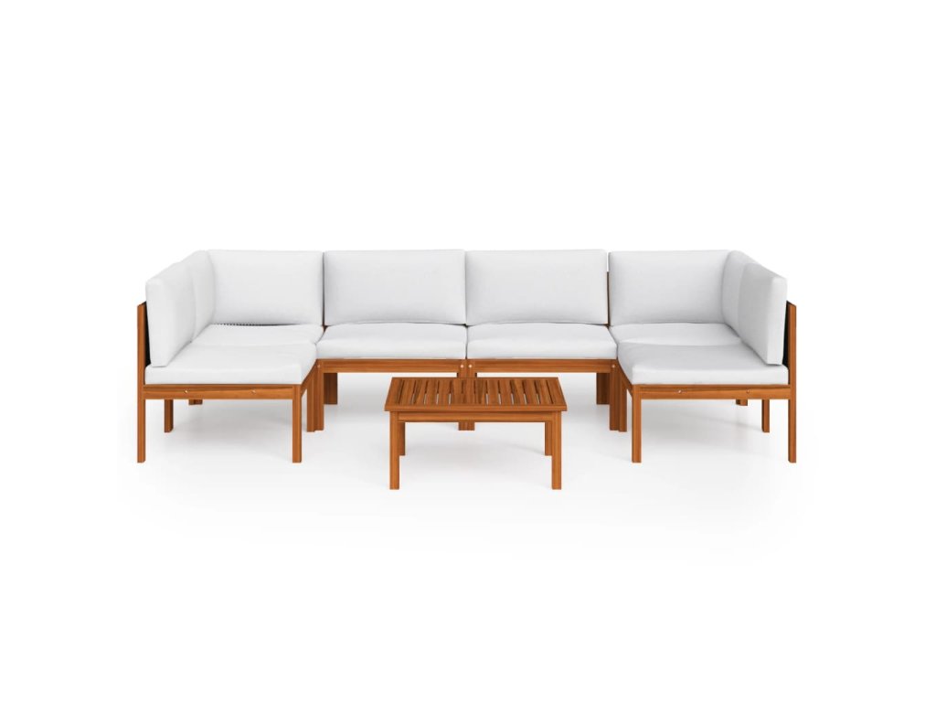 Marketos 7dílná zahradní sedací souprava s polštáři krémové dřevo akácie a provaz