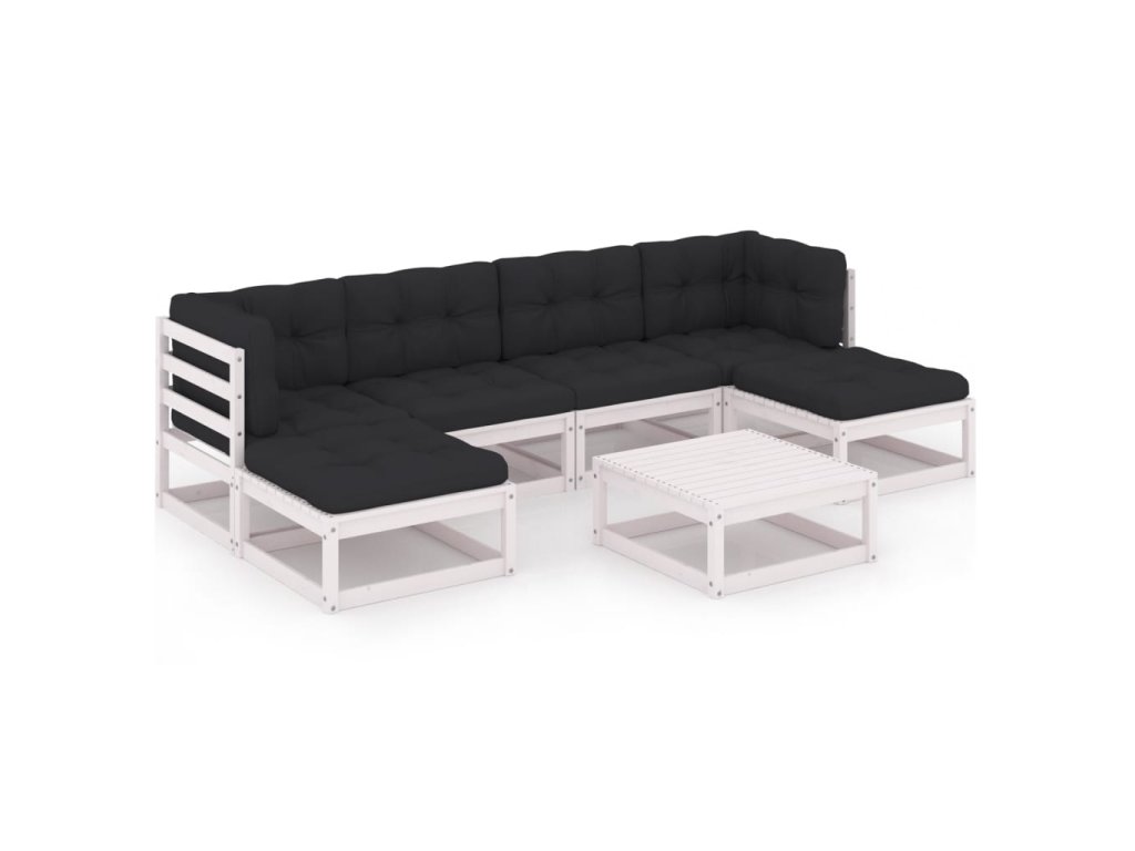 Marketos 7dílná zahradní souprava s poduškami bílá masivní borovice