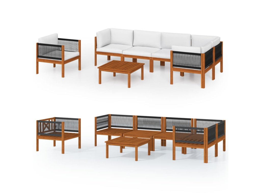 Zahradní pohovka se vyznačuje propracovanými provázkovými opěradly, která dodávají sofistikovaný nádech každému venkovnímu prostoru. Tato zahradní sedací souprava je vyrobena z vysoce kvalitního masivního akáciového dřeva, tropického tvrdého dřeva, které je odolné vůči povětrnostním vlivům a velmi trvanlivé. Díky olejové úpravě má sada zahradního nábytku teplou barvu a snadno se čistí a udržuje. Součástí balení jsou také sedáky a opěradla s tlustým polstrováním pro maximální pohodlí při odpočinku.