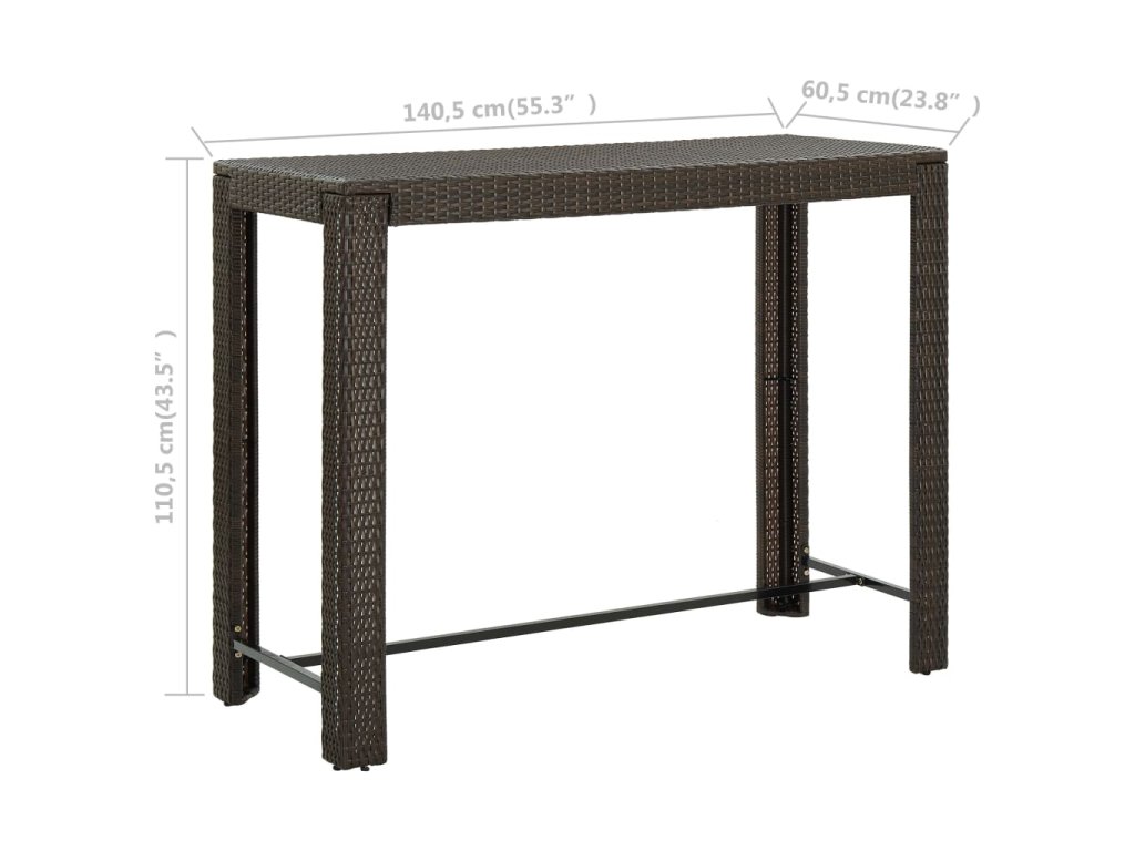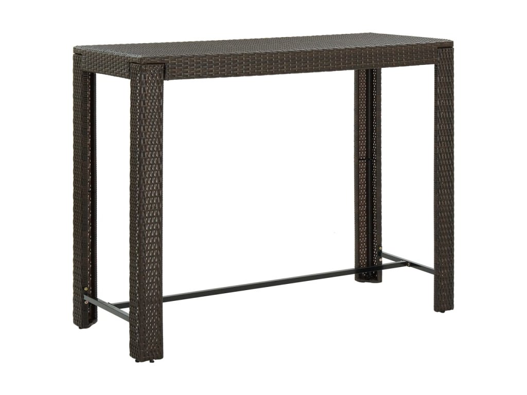 Základem barového stolu je rám z práškově lakované oceli, který mu dodává na stabilitě a odolnosti. Stolní deska vám skvěle poslouží k odkládání nápojů a občerstvení nebo k vystavení dekorativních předmětů. Stoličky mají pevnou konstrukci z oceli, která je opletená voděodolným PE ratanem, jsou tedy stabilní a snadno se přesouvají. Opěrka na nohy vám navíc při sezení zajistí další pohodlí.