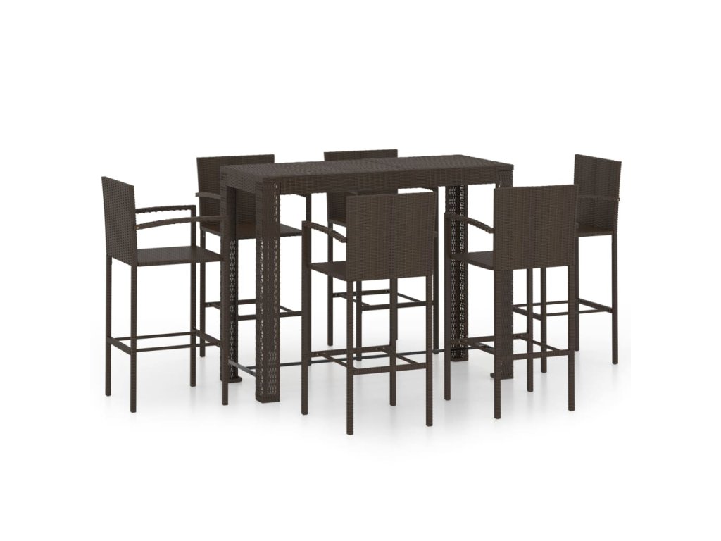 Marketos 7dílný zahradní barový set s područkami polyratan hnědý