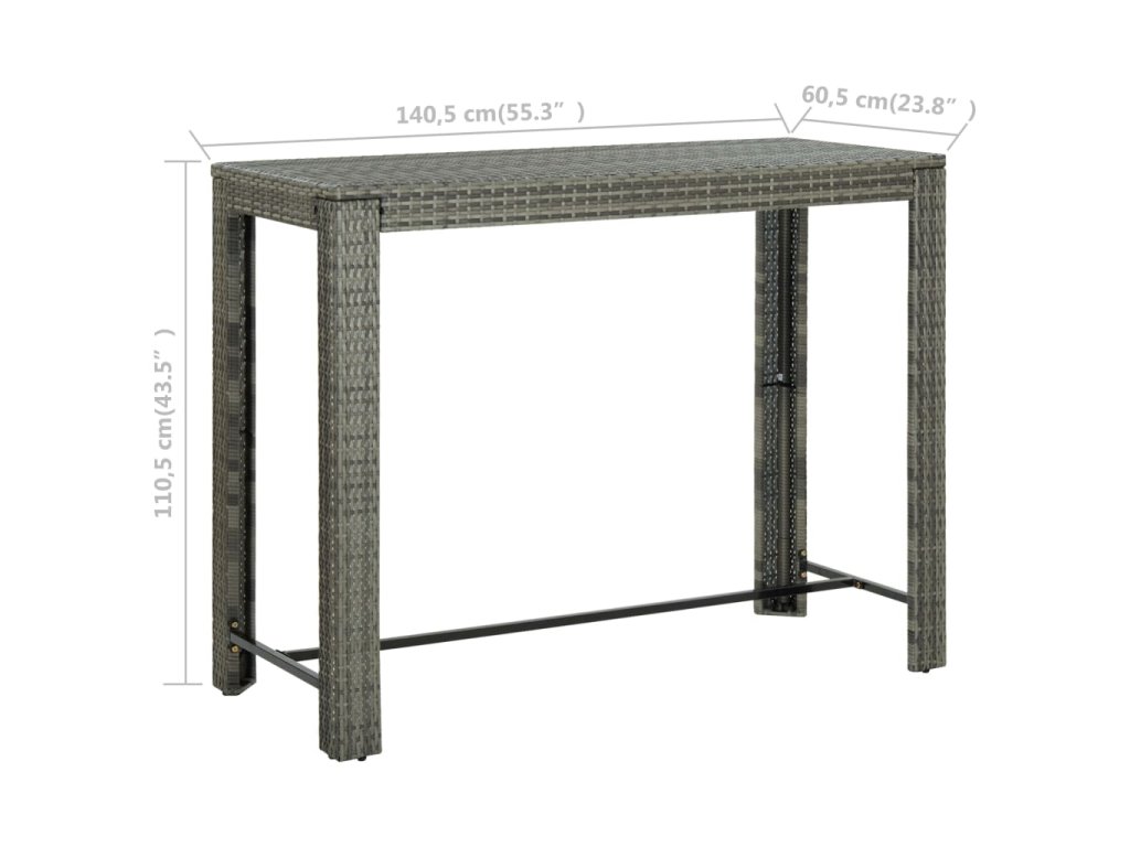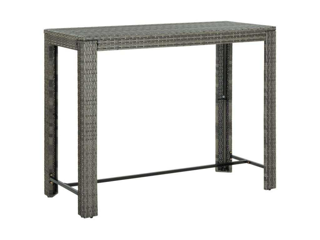 Základem barového stolu je rám z práškově lakované oceli, který mu dodává na stabilitě a odolnosti. Stolní deska vám skvěle poslouží k odkládání nápojů a občerstvení nebo k vystavení dekorativních předmětů. Stoličky mají pevnou konstrukci z oceli, která je opletená voděodolným PE ratanem, jsou tedy stabilní a snadno se přesouvají. Opěrka na nohy vám navíc při sezení zajistí další pohodlí.