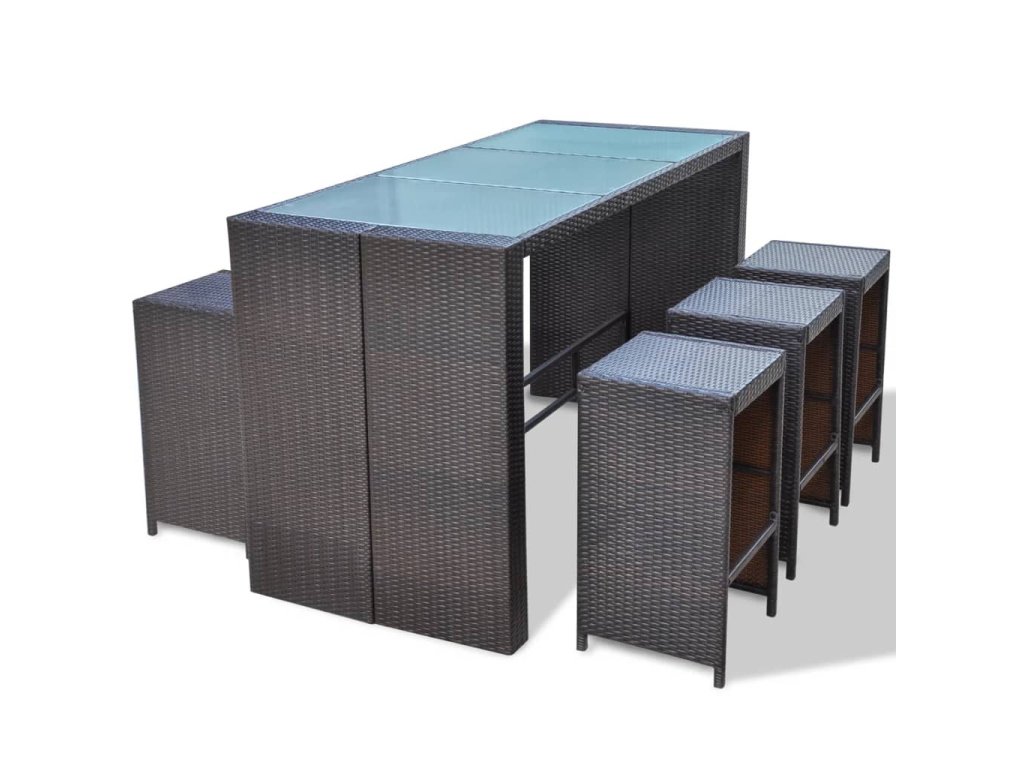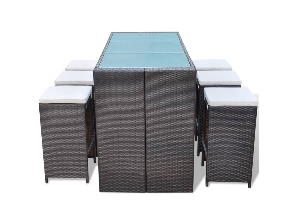 Marketos 7dílný zahradní barový set s poduškami polyratan hnědý